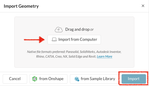• Click + next to GEOMETRIES, and import the NACA0012 CAD model