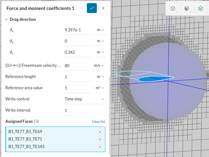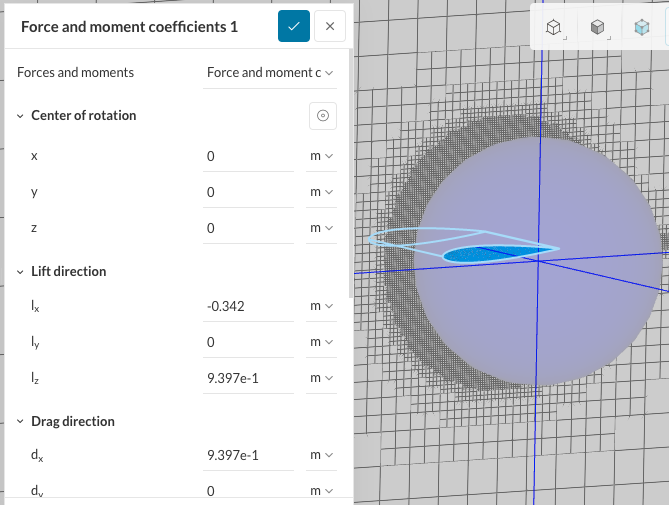 • Now, it’s time to set up the ‘Force and moment coefficients‘ by clicking ‘+’, and enter the following values.