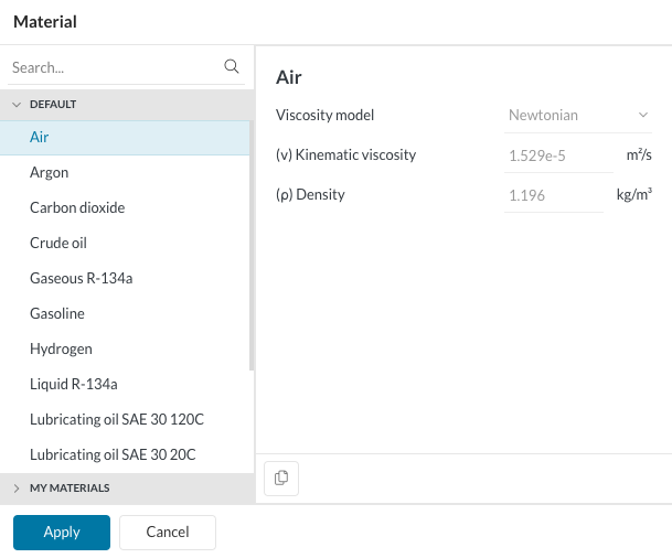 • Select ‘Air’ by clicking ‘+’ next to Material’.
